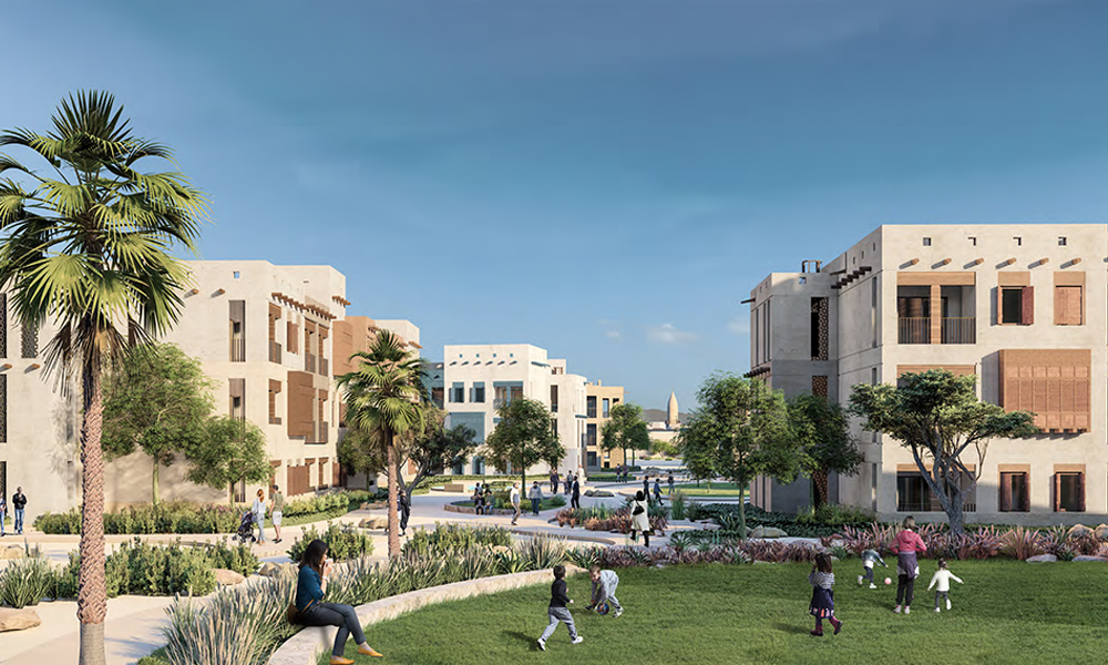 Haif Trading and Contracting Company will construct a network of paths, walkways, street lighting and public realm landscaping, as well as bulk earthworks and Wadi diversion works. The contract also covers the construction of utility hubs, a potable water network, a firefighting water network, an irrigation network, a sewerage network, and stormwater drainage.
