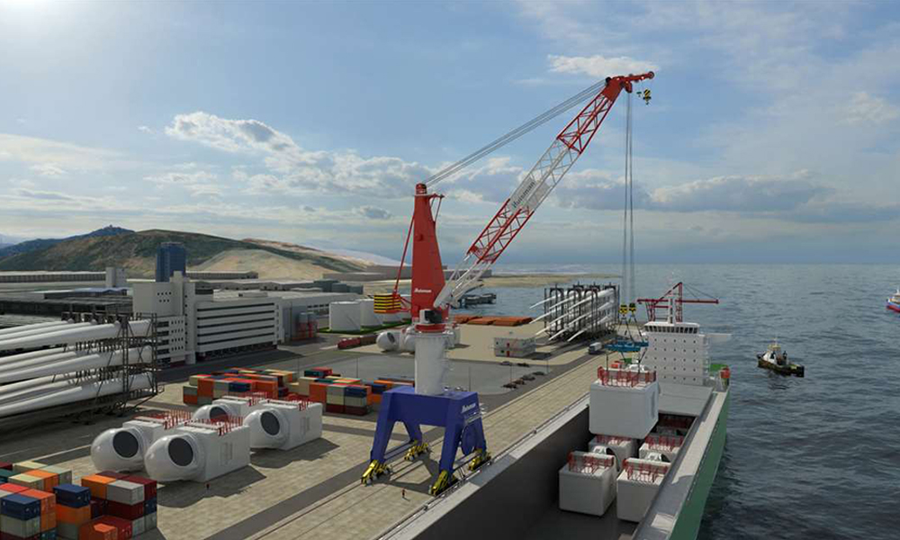 The fully-electric crane is expected to improve speed of load-out process of offshore wind turbines