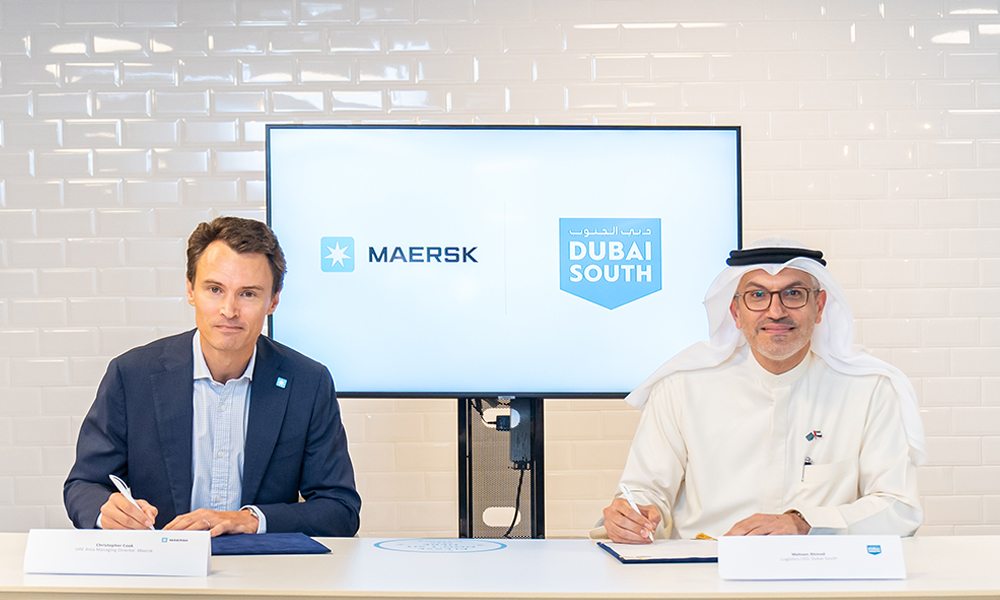 The agreement was signed by Christopher Cook, Managing Director, Maersk UAE and Mohsen Ahmad, CEO of the Logistics District, Dubai South, at the regional headquarters of Maersk West & Central Asia in Dubai.