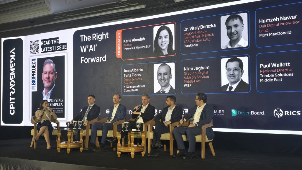 Trust emerged as a recurring theme. For Dr. Vitaly Berezka of PlanRadar, over-regulation, particularly in Europe, risks stifling innovation before AI can prove its worth. Others, like Nawar and Nizar Jegham of WSP, argued that clear internal governance—through company-level policies, contractual clauses and liability frameworks—is essential to control risks such as misuse of proprietary data, bias in algorithms, or unclear responsibility when systems fail.